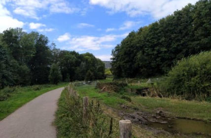 Vanaf het station loopt U naar rechts. U wandelt onder de grote boog door langs de VVV naar beneden. Onder aan dit pad (Spoorplein) ligt wandelknooppunt 15. Daar gaat U naar rechts richting wandelknooppunt 34. U volgt de paralelweg langs het UWV. U loopt eerst door een oude woonwijk. Daarna loopt U onder de N281 door. U wandelt vervolgens verder over Landgoed Terworm. Na Kasteel Terworm steekt U de Geleenbeek over. U wandelt verder langs de Overste en Onderste Douvenrade. Via de drukke Valkenburgerweg loopt U daarna naar het centrum van Heerlen. Aldaar passeert U de Pancratiuskerk en Glaspaleis SCHUNCK. Ten slotte loopt U door het centrum van Heerlen terug naar het Maankwartier bij het station. Diverse horeca. Ook bij start en finish. (80% verhard – 20% onverhard) (stijging 50 meter)
